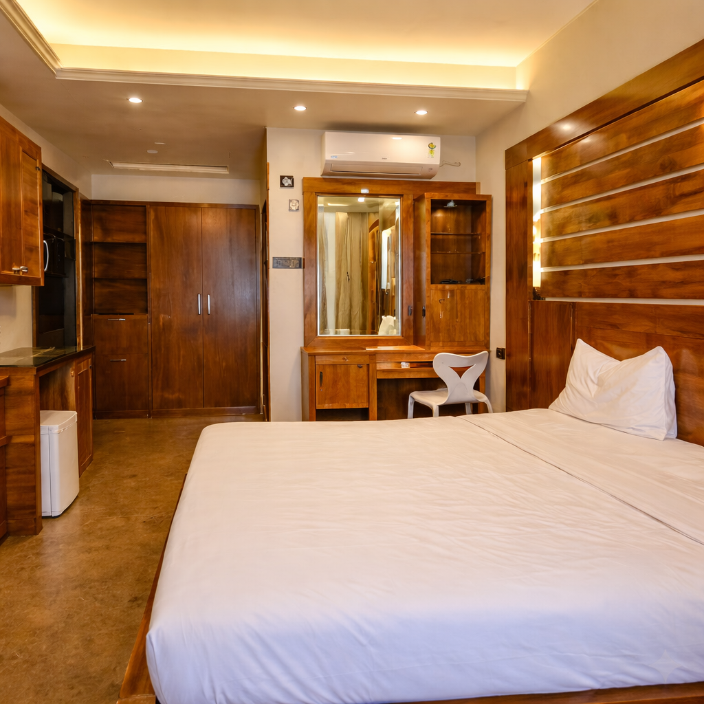 MAK Hotel, Bangalore offers well-designed rooms with warm wooden interiors, modern amenities, and large windows that open to refreshing green views. Located near Domlur, Indiranagar, and Koramangala, the hotel provides a calm and comfortable stay for both business and leisure travelers.